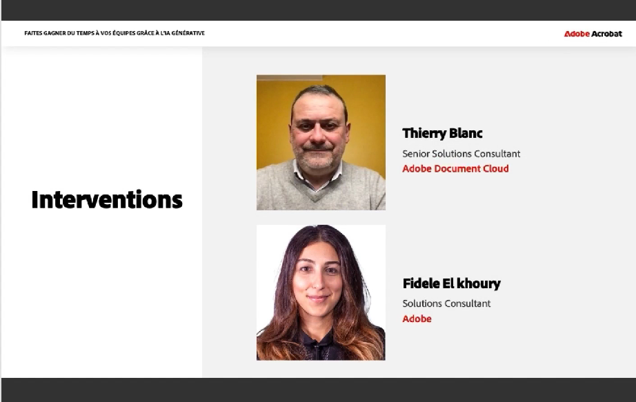Présentation : Thierry Blanc, Senior Solutions Consultant, Adobe Document Cloud Fidele El Khoury, Solutions Consultant, Adobe